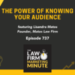 Did you like this episode? Dislike it? If your law firm does not know its audience, then your marketing is going to hurt! This is why knowing your audience is critical!Lisandra Matos, owner of Matos Law Firm, speaks about the way they have curated Matos Law World to their audience. By doing this, they are able to relate with their audience on a deeper level making it a great place for them to be! You can see Read More