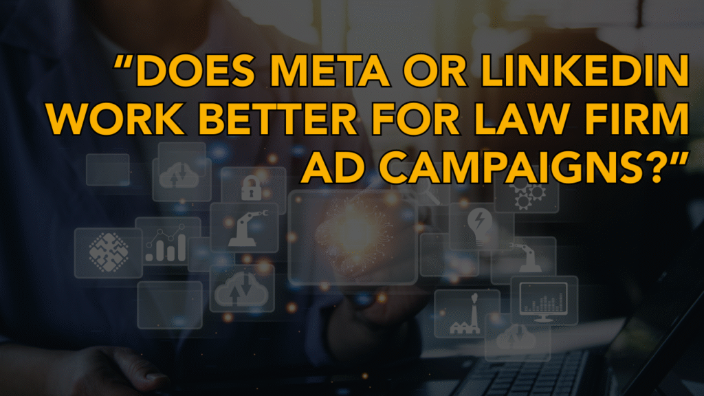 Of course, every situation is different… but we generally find that Meta performs much better for law firms. (If you’d like to discuss your specific law firm & target market… click here to schedule a strategy session!)